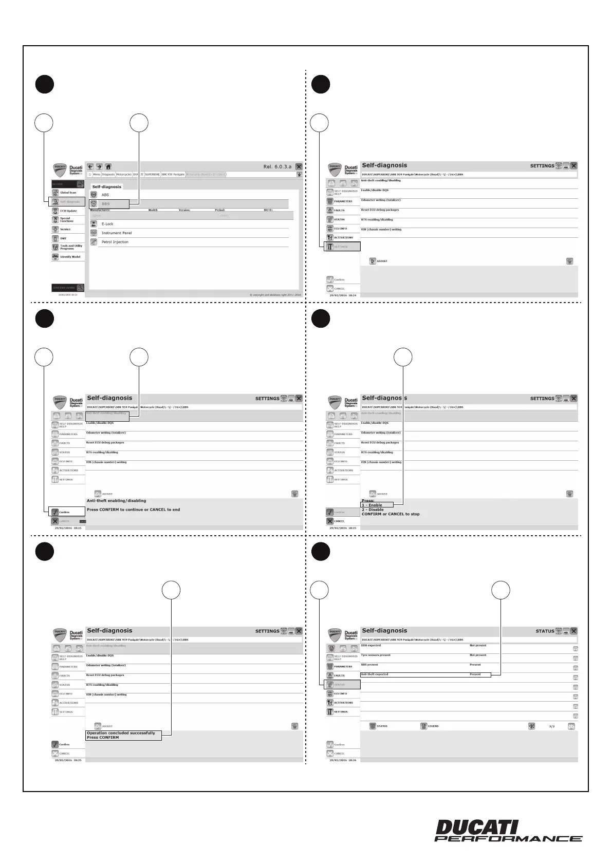 Ducati 96680691A - Diagnostic Software Operation; Self-diagnosis Screen Navigation; Operation Confirmation
