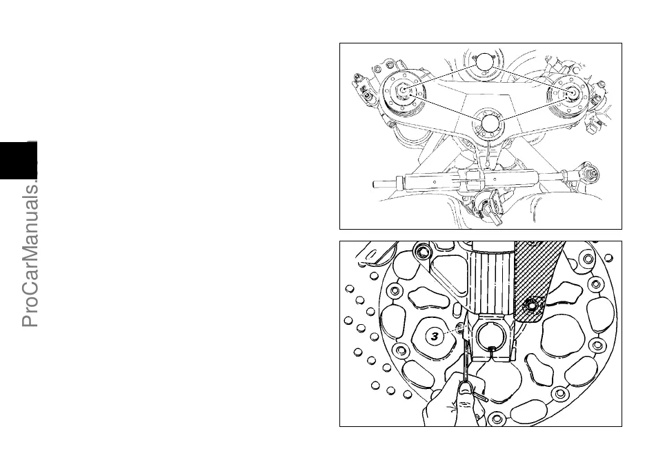 Turn the adjuster (1) on fork leg top with a 3-mm Allen
