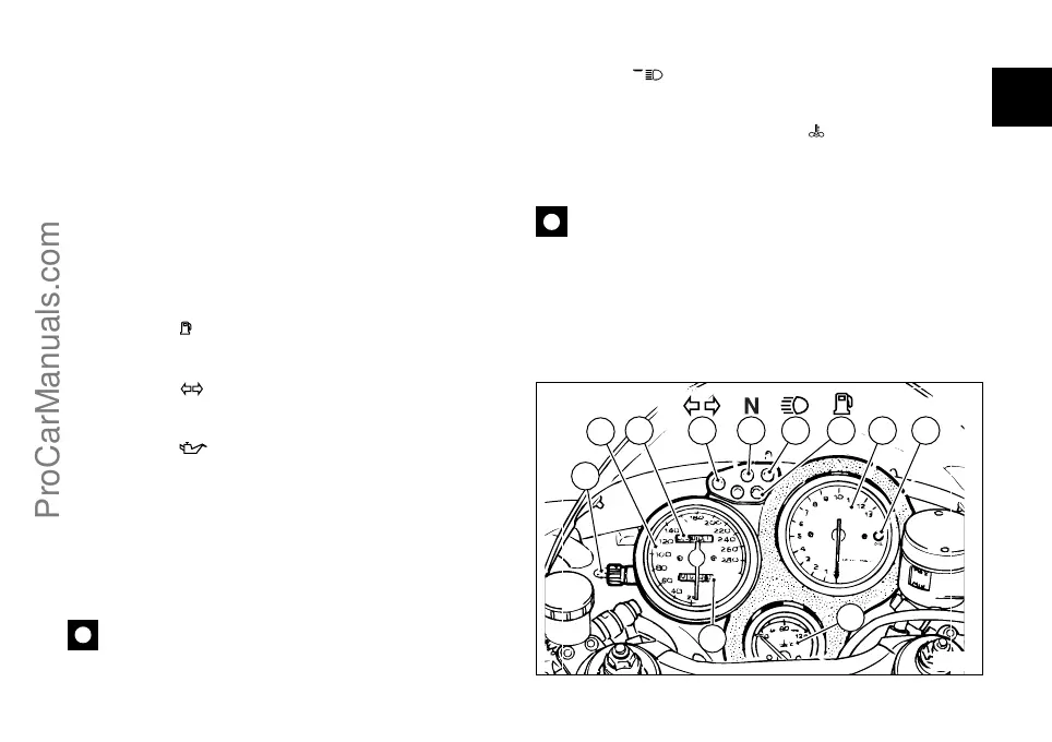 Non utilizzare il motociclo quando la spia (6) rimane