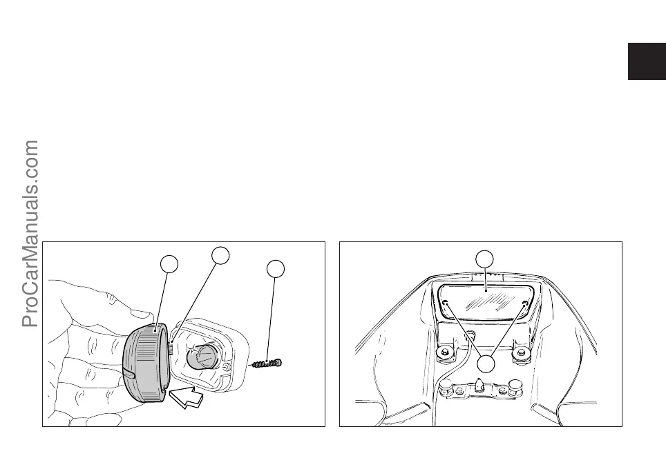 due viti (1) che fissano il coperchio (2). La lampadina ha