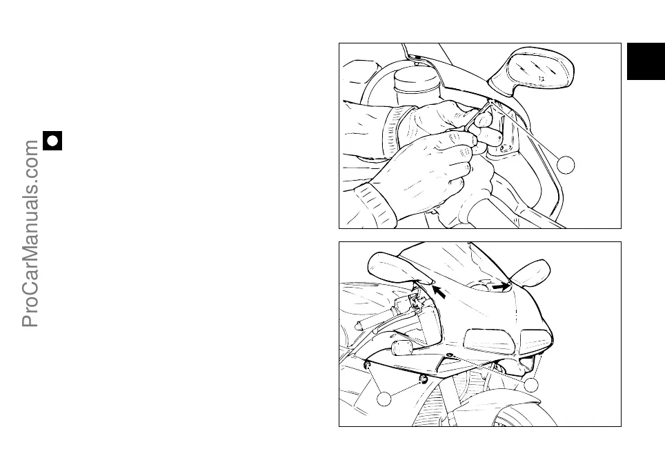 Svitare le due viti (2) di fissaggio al supporto faro e