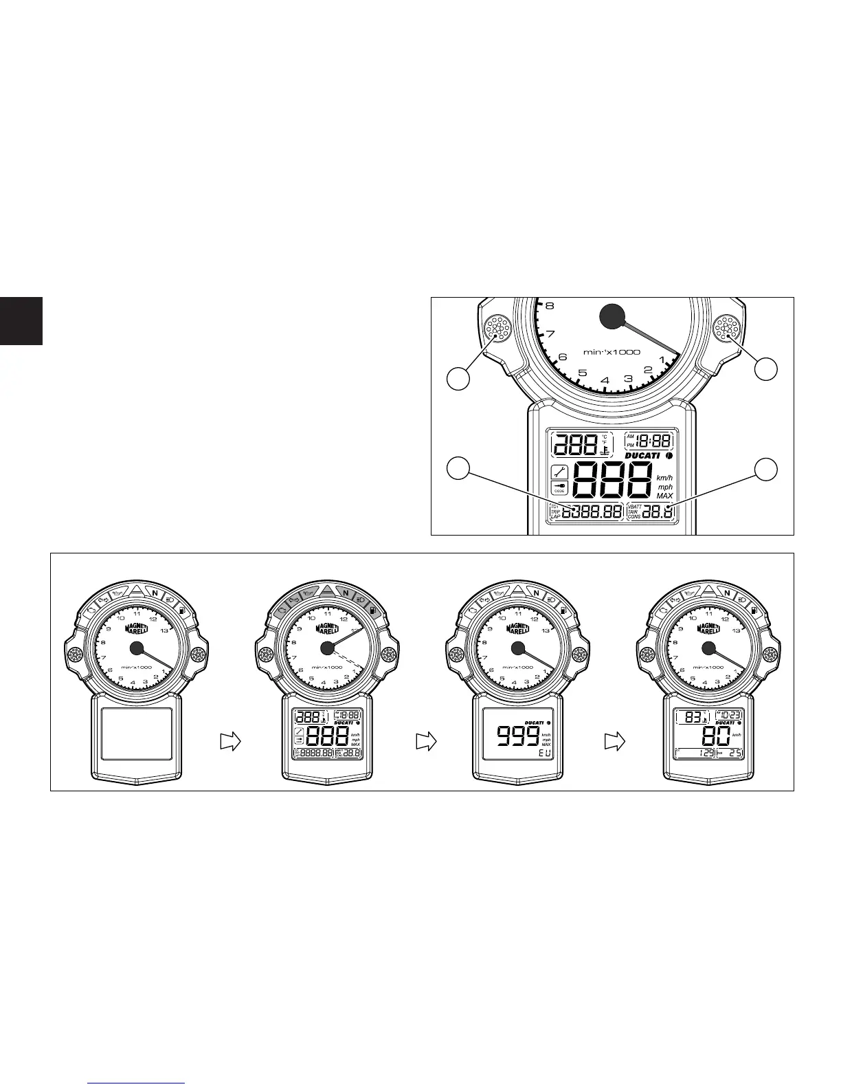 All’accensione (chiave da OFF a ON) il cruscotto esegue