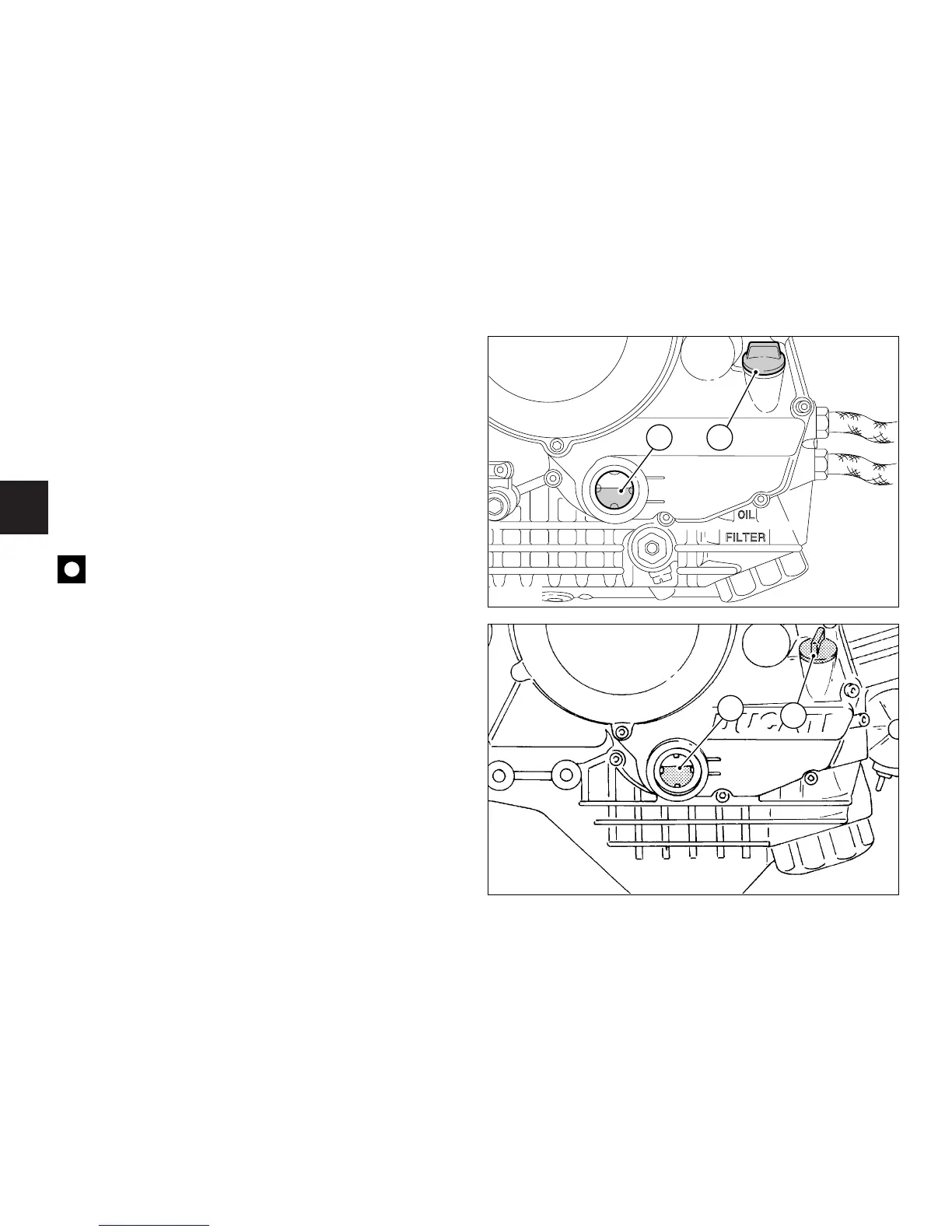 Undo the filler plug (2) and top up to correct level.