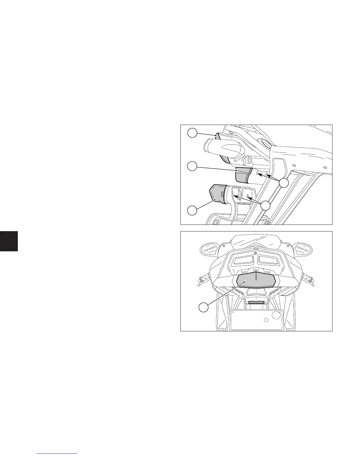 deux goupilles fixant l'optique (3) du feu arrière. Sortez le