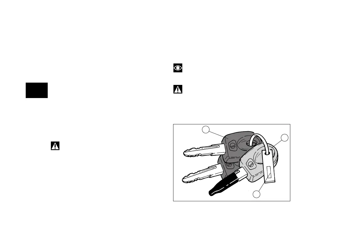 The keys B are regular ignition keys and are used to: