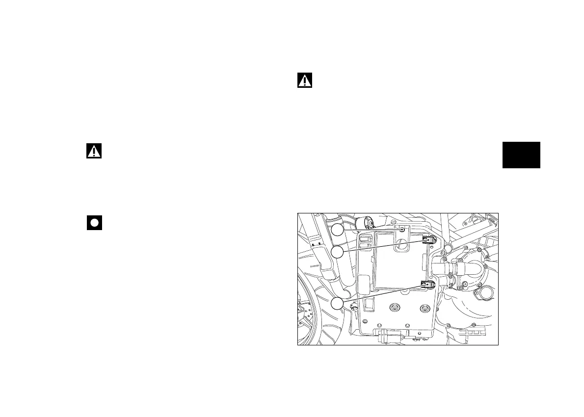 Remove right fairing (page 54), undo the screw (1) amd