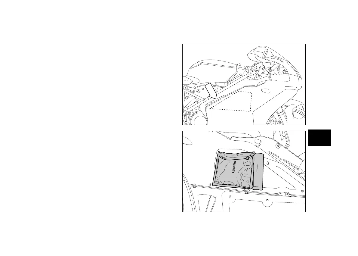 A l’intérieur du semi-carénage droit est placée la trousse à