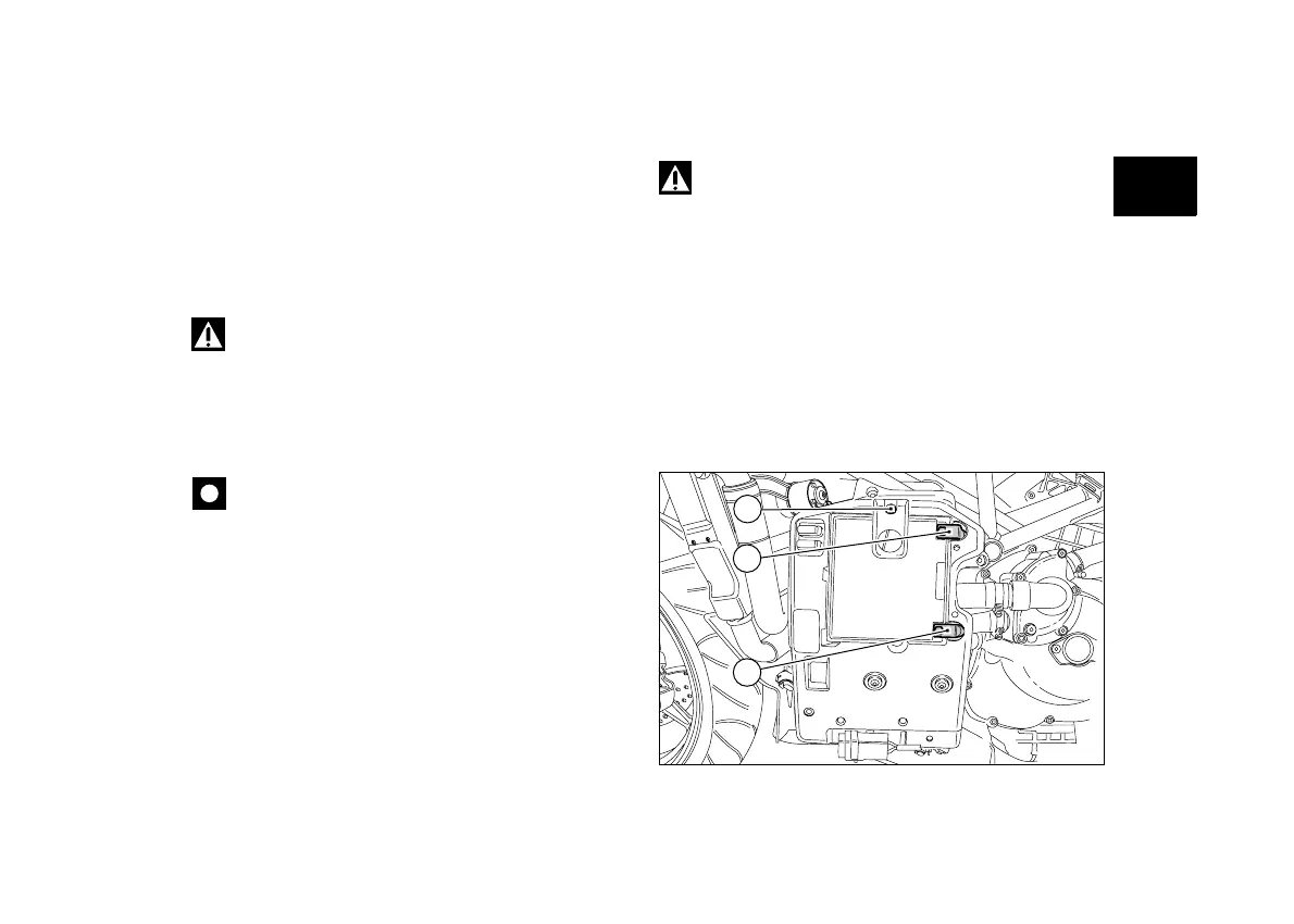 Rimuovere la carena sinistra (pag. 54), svitare la vite (1) e