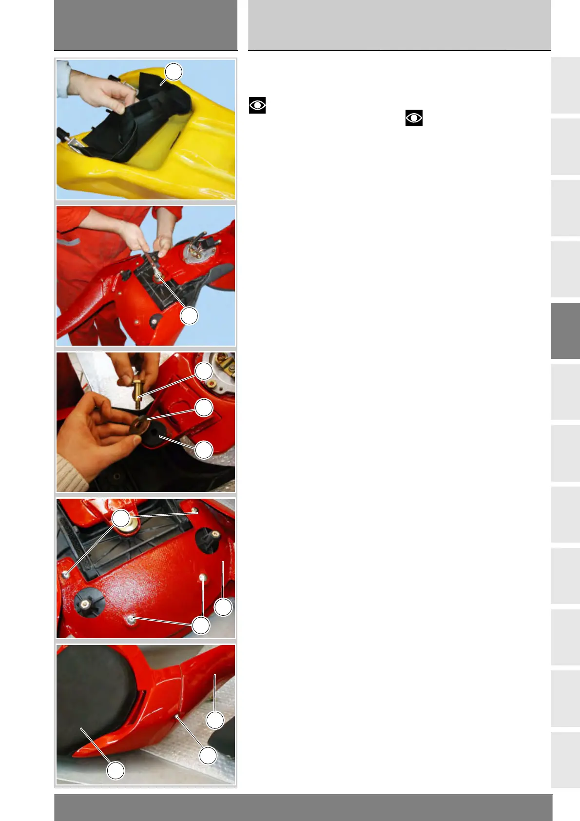 Separate the rear fairing (17) or (32)