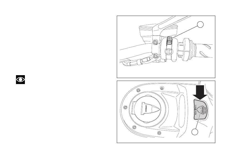 switch on the handlebar or using button (7) on the