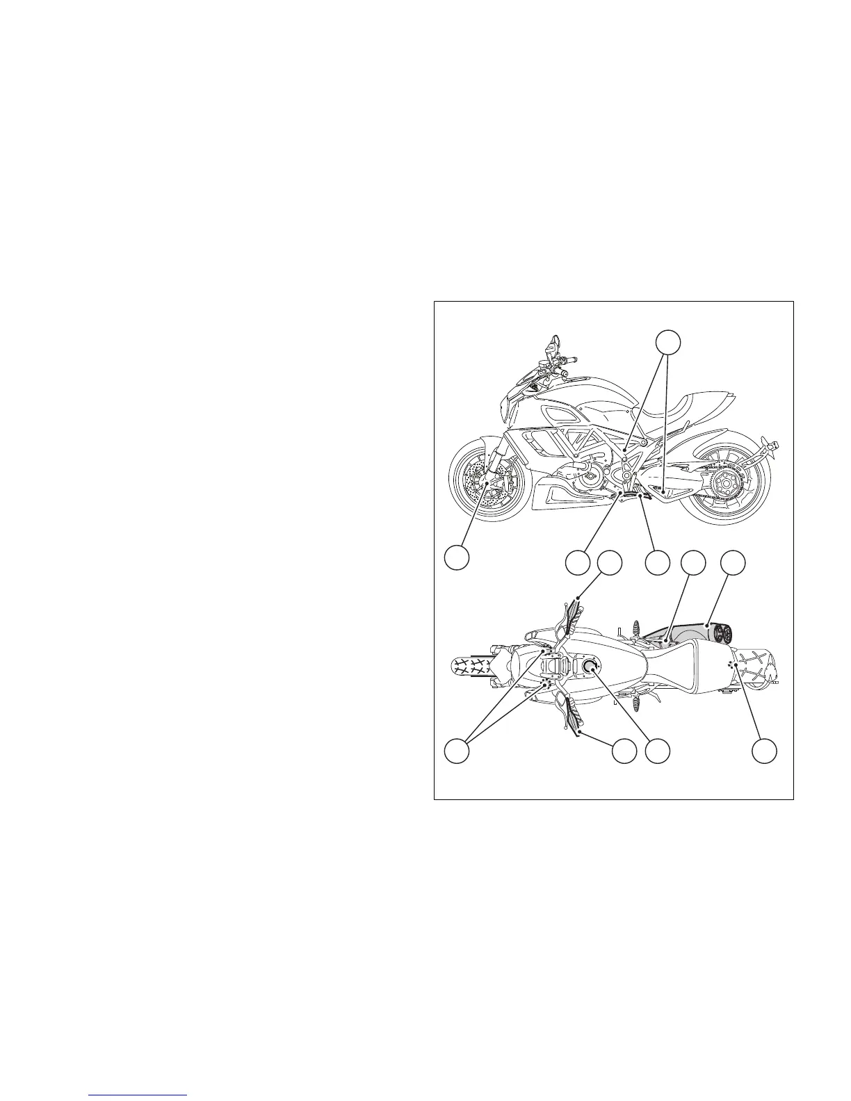 Ducati Diavel - Main components and devices; Position on the vehicle