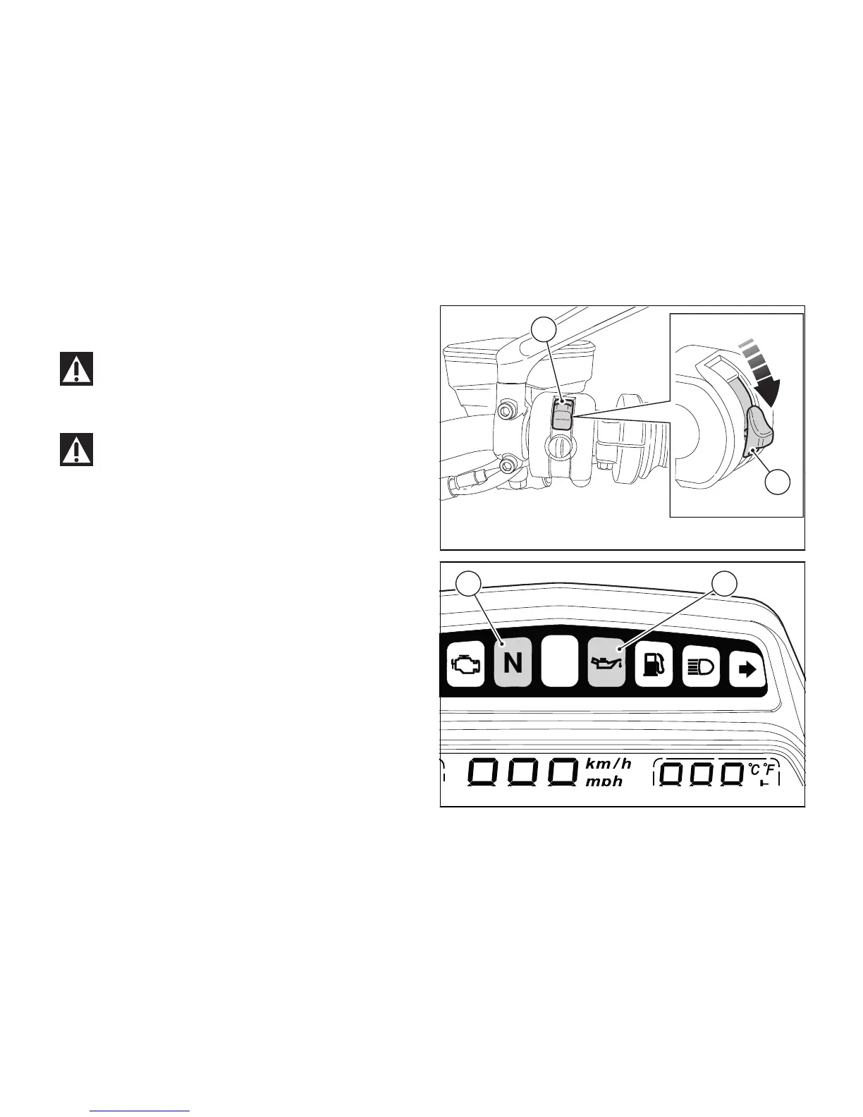 switch (1), on the right side of the handlebar,