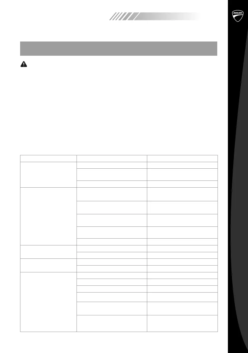 As avarias que não podem ser corrigidas com a ajuda da tabela seguinte, podem ser