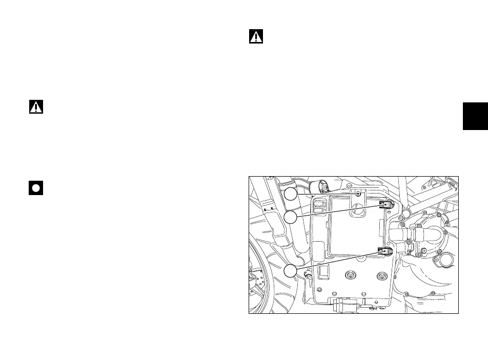 Remove the l.h. body panel (page 52), undo the screw (1)