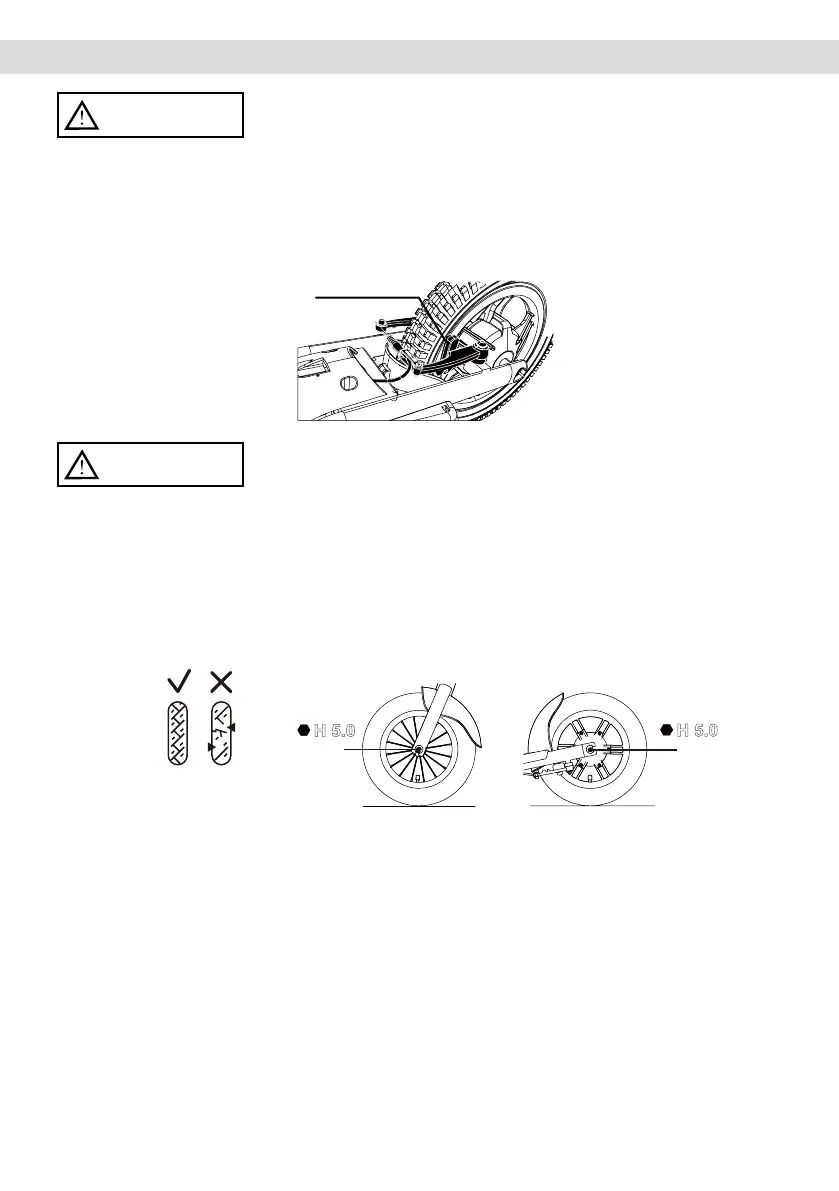Check the tyre tread & pressure before each ride. Inflate the tyre to indicated pressure