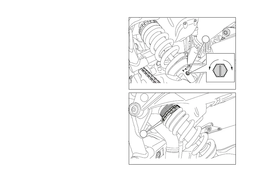 - rebound: loosen adjuster (1) by 8 clicks (from fully