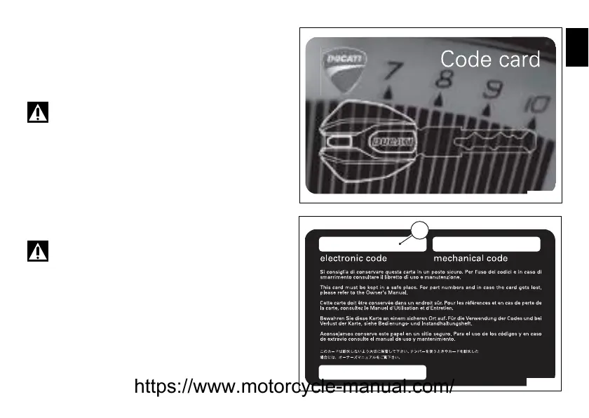 The CODE CARD (fig. 32) supplied with the keys reports an