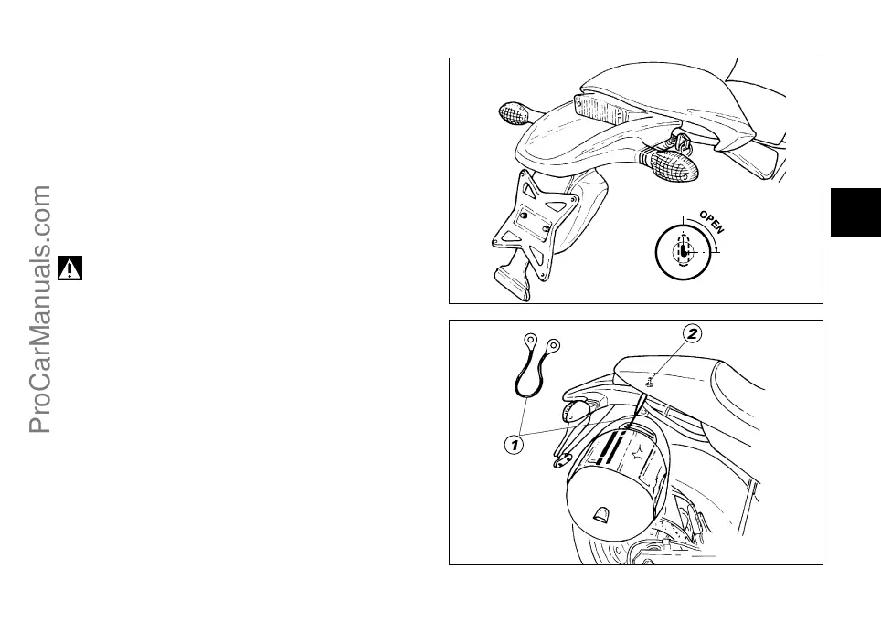 seat, there is the helmet fastening cable (1) (see page