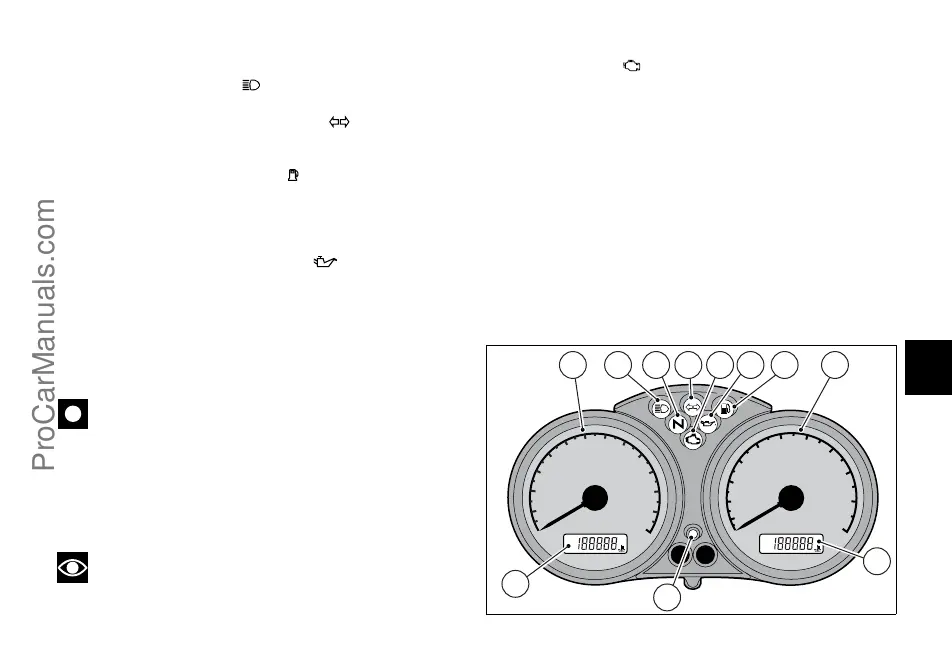 1) Témoin feu de route (bleu).