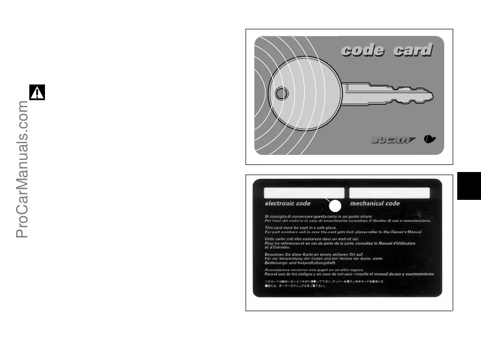 Une CODE CARD (fig. 8) est fournie avec les clés. Cette