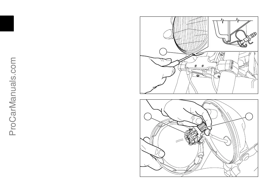 Staccare il connettore (2, fig. 46) dalla lampadina del