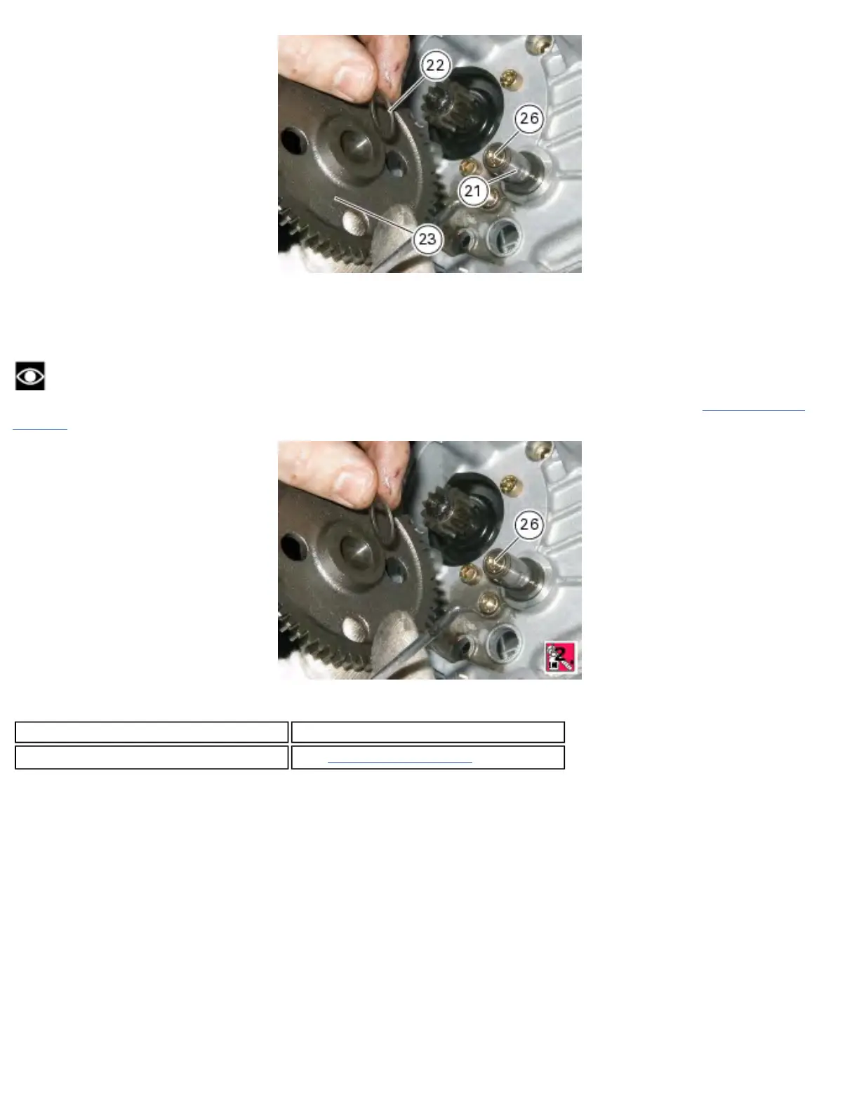 Apply recommended threadlocker to screw (26), then tighten it to the specified torque (Sect. C 3, Engine torque