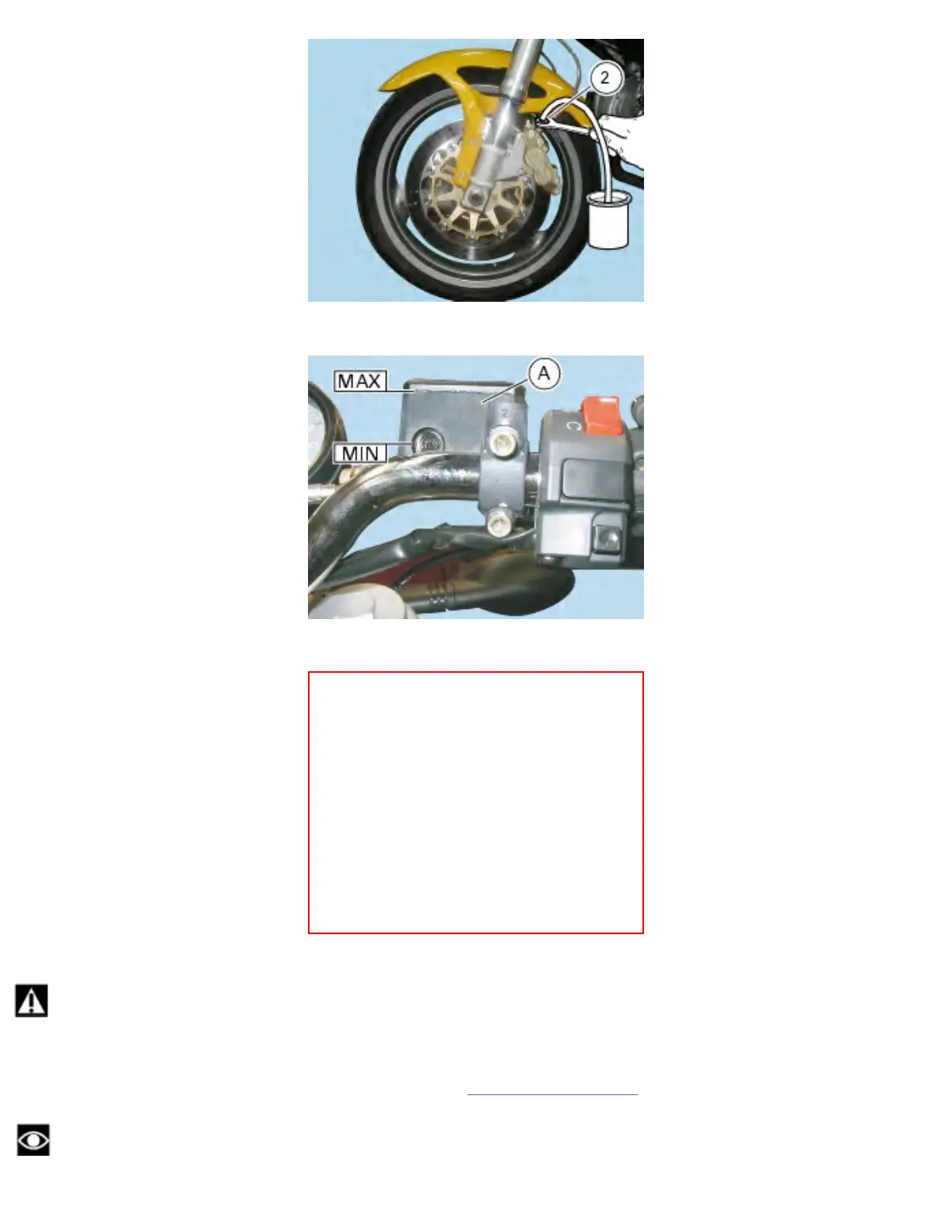 When filling up, keep oil level above MIN mark to avoid air bubbles into the circuit.