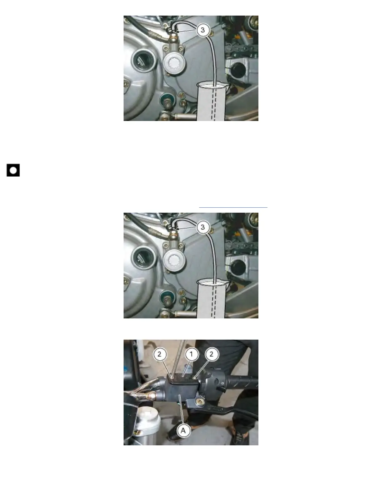 Open the bleed valve (3) by one fourth of a turn and operate the clutch lever several times until the fluid starts