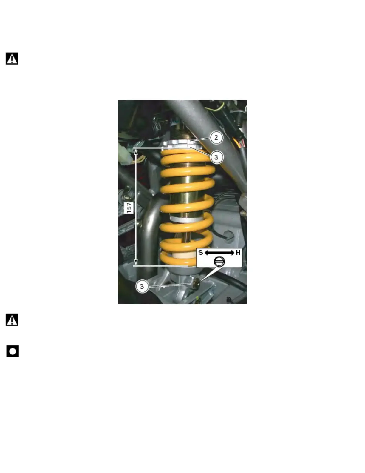 To change spring preload, slacken the upper ring nut (2) with a pin wrench. Tighten or slacken the lower ring nut (3)