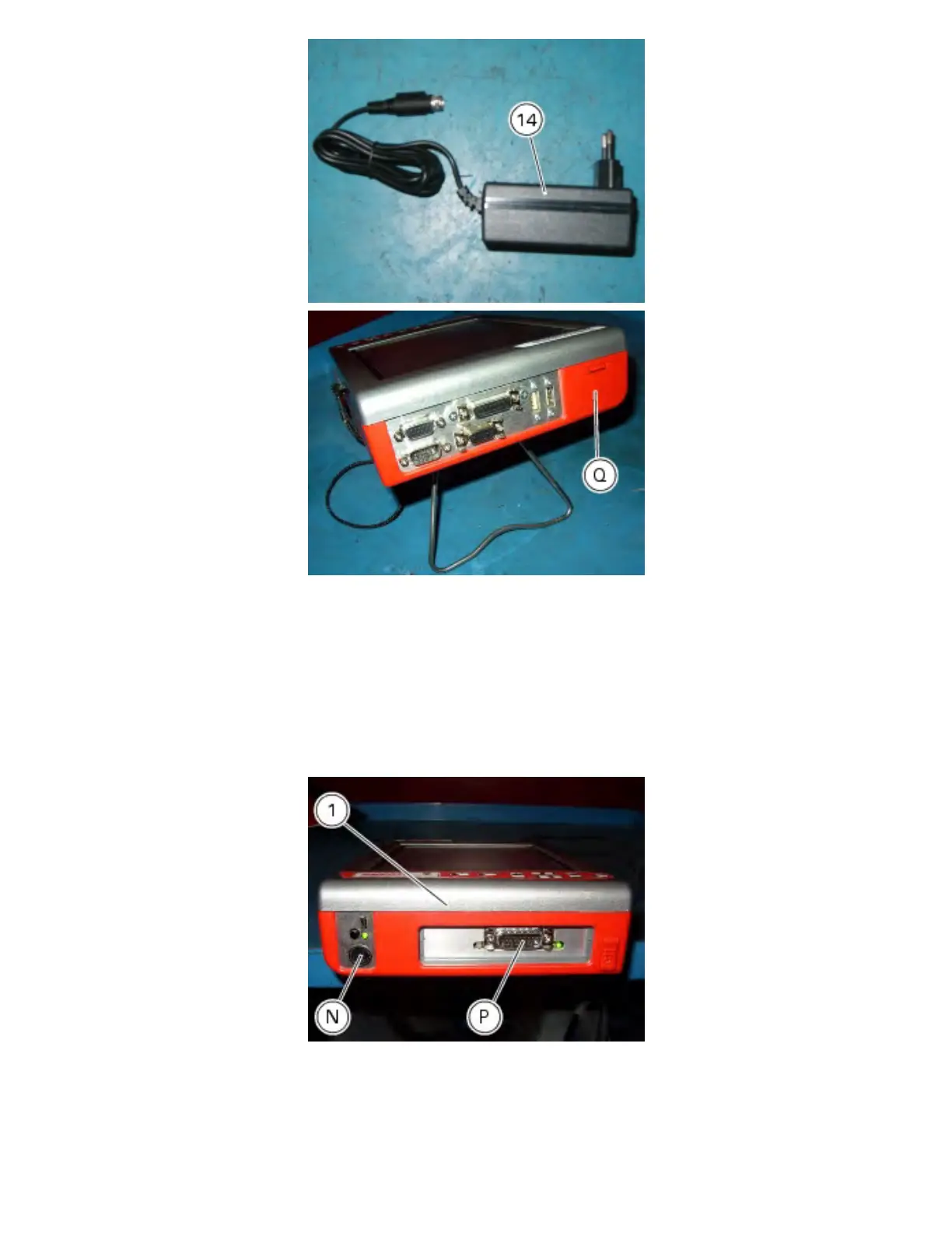 connecting battery power supply (13) to the power connector (N) of the instrument and connecting battery power