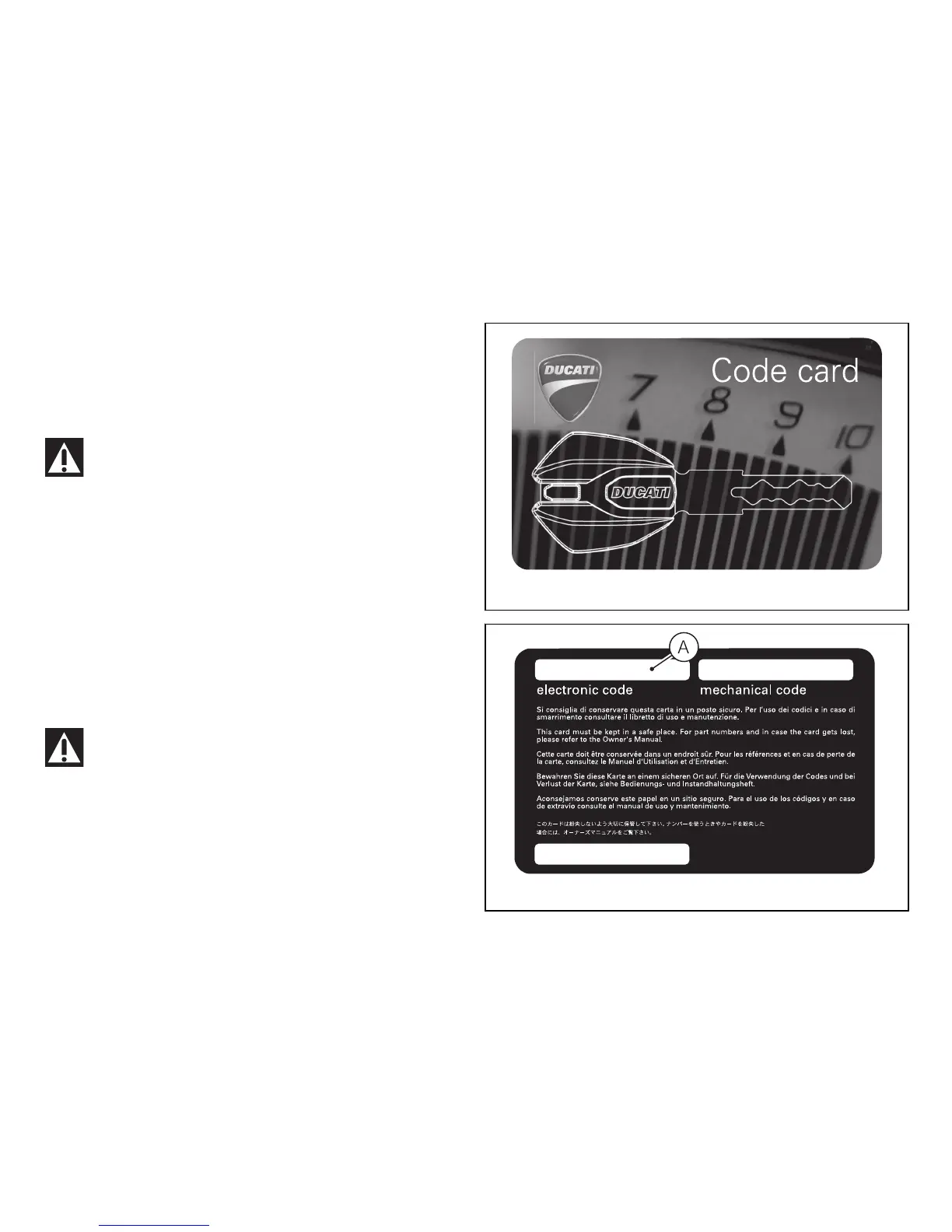 One CODE CARD supplied with the keys indicates