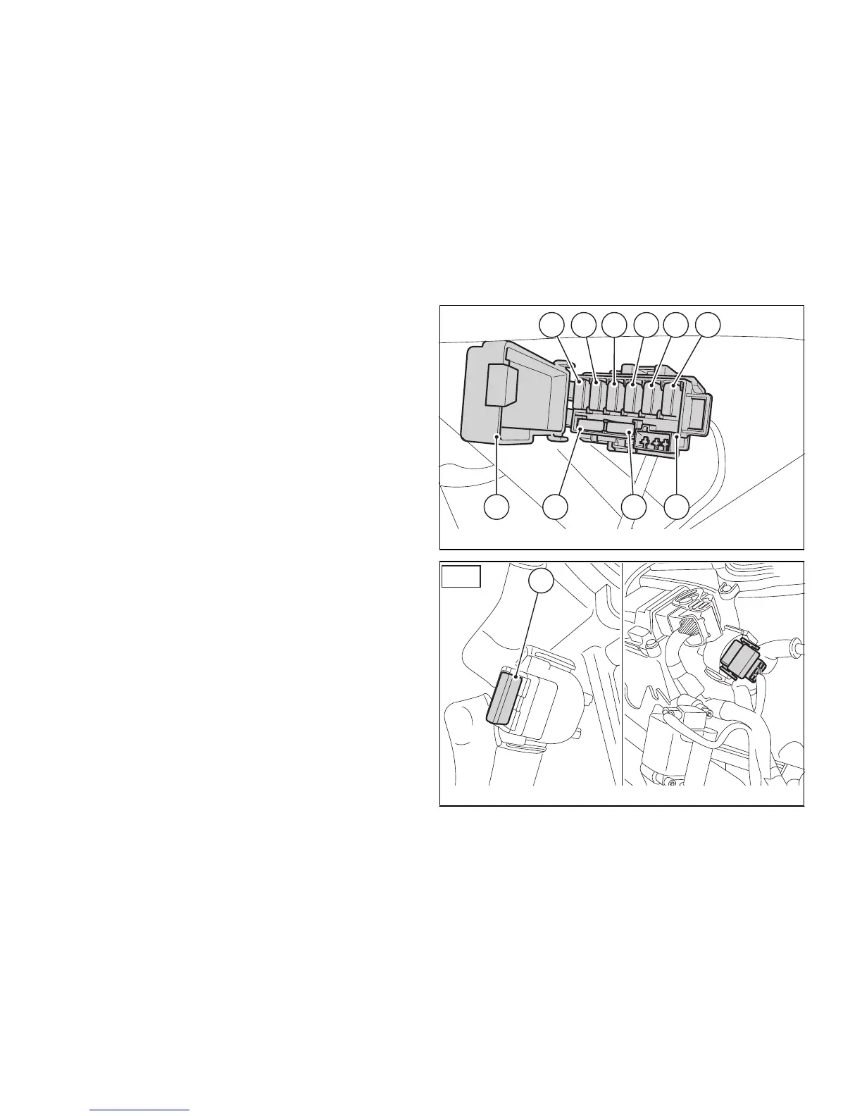 The main fuse box (9) is located on the right side.