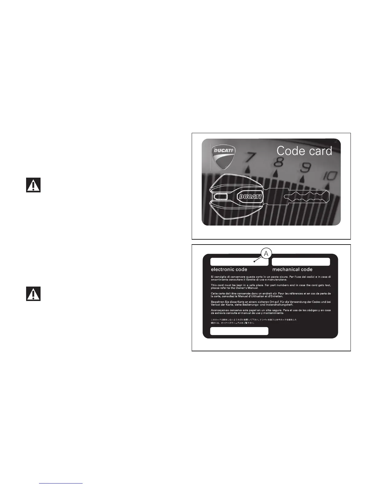 One CODE CARD supplied with the keys indicates