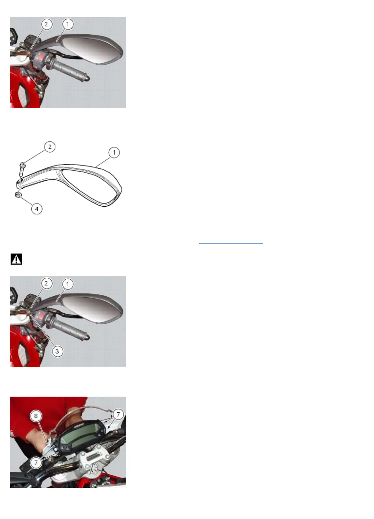 Start the screws (2) in their thread on the rear-view mirrors (1), inserting the washers (4) as shown in the picture.