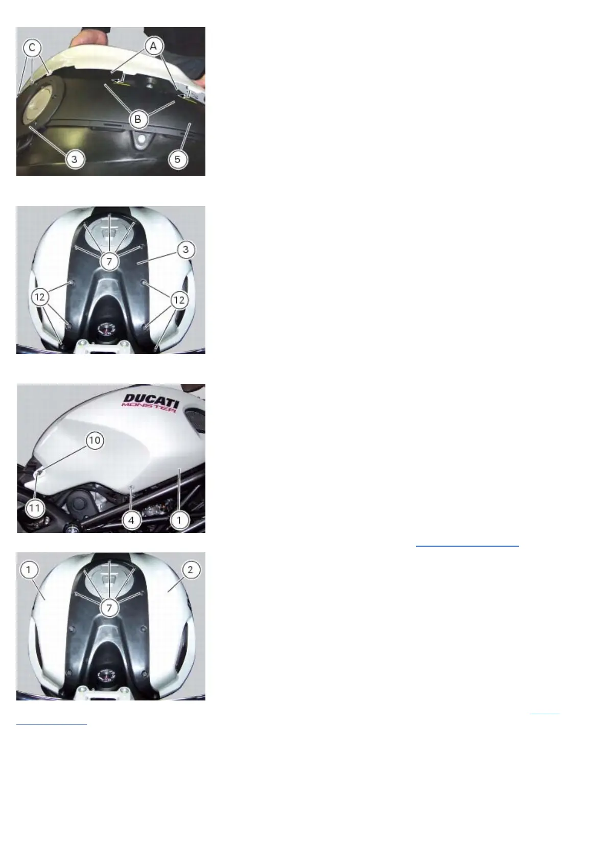 Insert the screws (11) complete with the nylon washers (10) and screws (4) in the RH tank cover (1) and LH tank cover