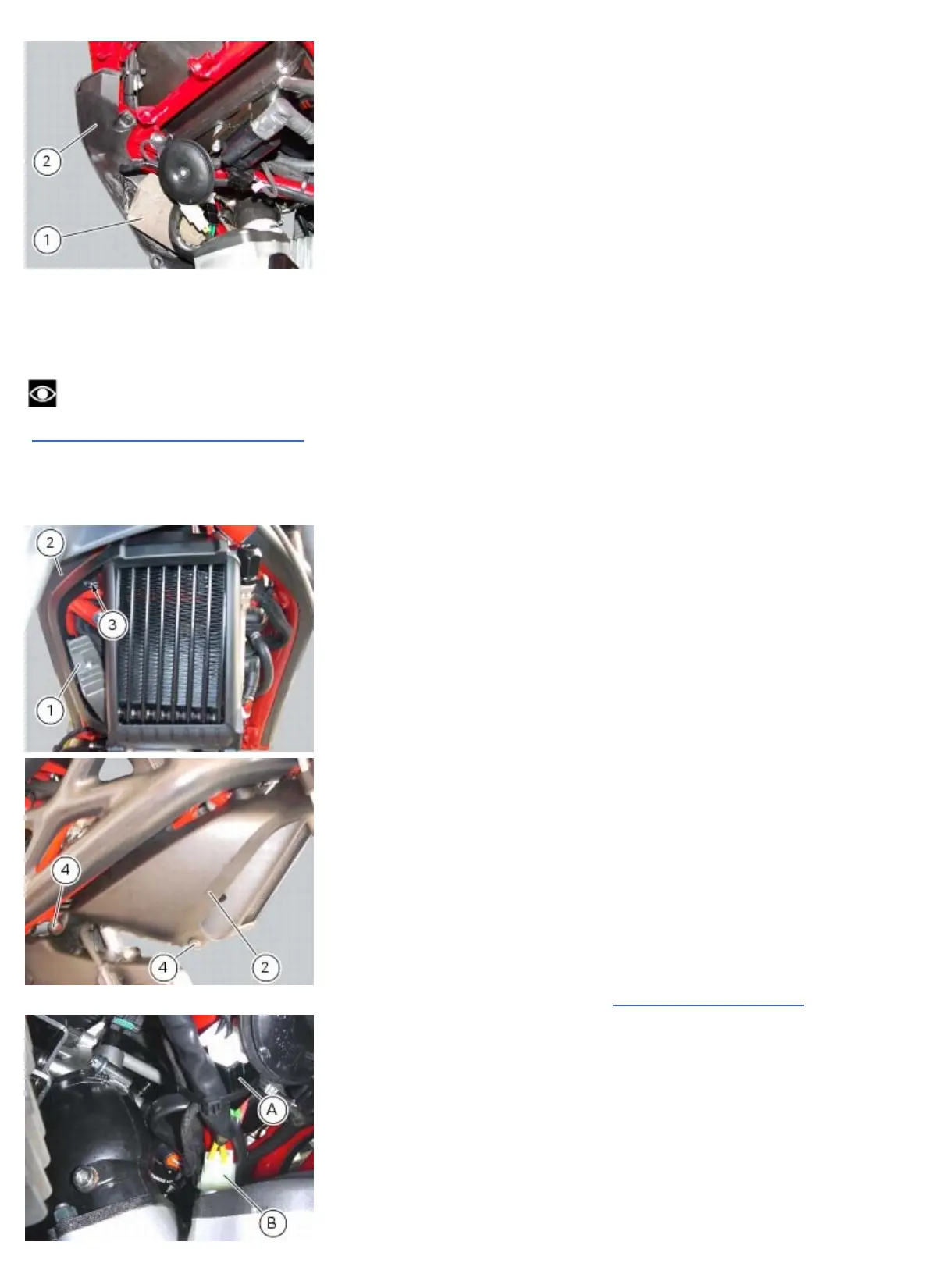 Disconnect the generator connector (B) and main wiring harness (A) (Sect. 6 - 1, Routing of wiring on frame).