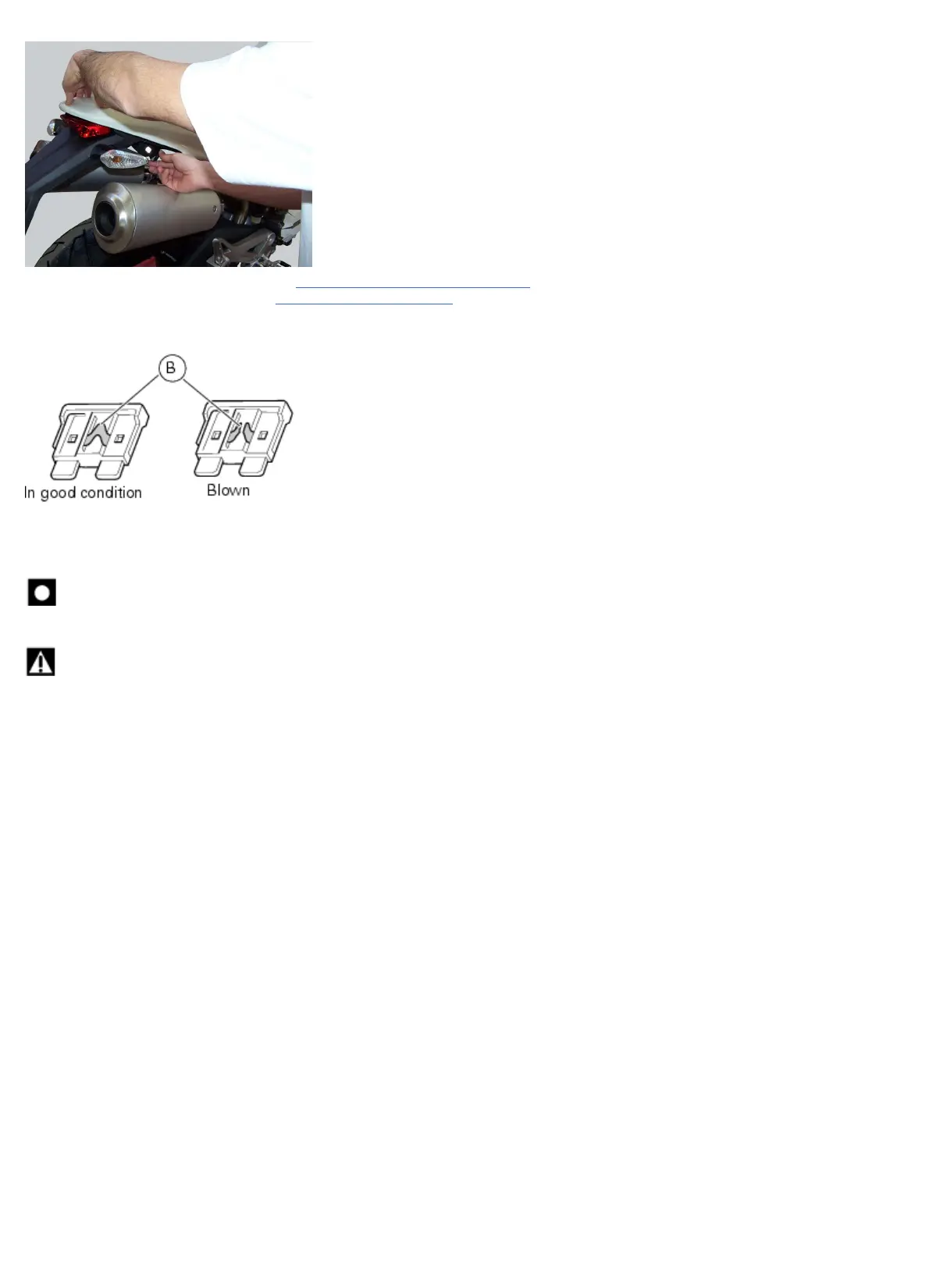 A blown fuse can be identified by breakage of the inner filament (B)