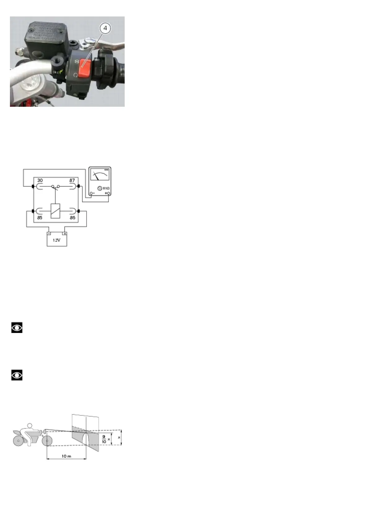 Disconnect the relay (1) from the electrical system and apply 12 V (battery voltage) between contacts (86) and (85)