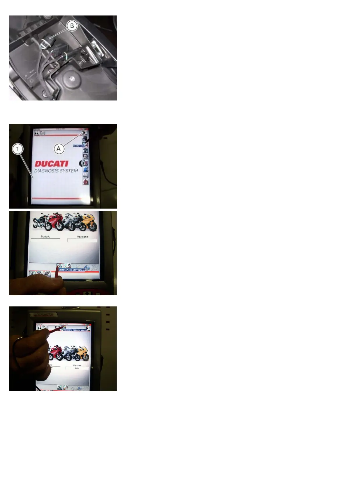 Press the “Select vehicle” icon and, on the next screen, press the “Select motorcycle” icon; select the motorcycle model