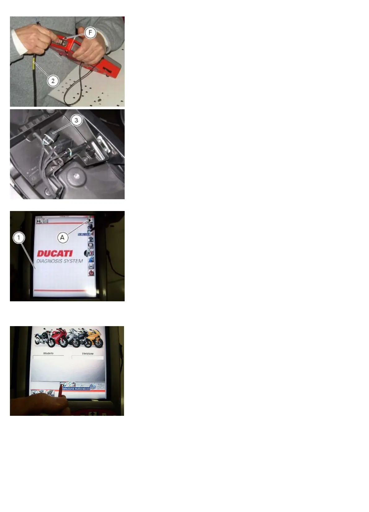 Press the “Select vehicle” icon and, on the next screen, press the “Select motorcycle” icon; select the motorcycle model