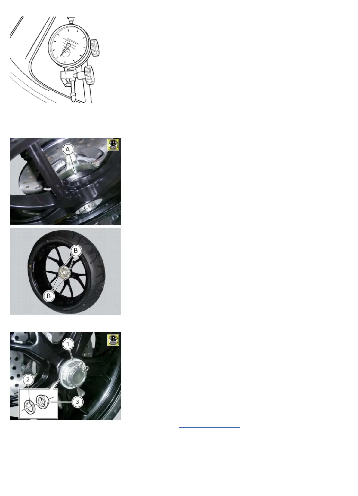 Fit the rear wheel centring it in the shaft and engaging pegs (A) into holes (B) on wheel.