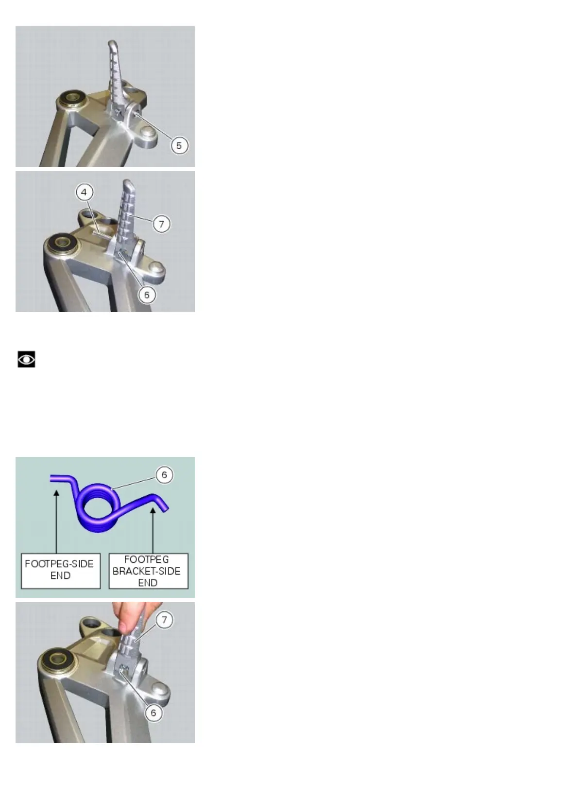 To reassemble the front RH footrest (7), locate the spring (6) between the footrest lugs and attach it to the footrest