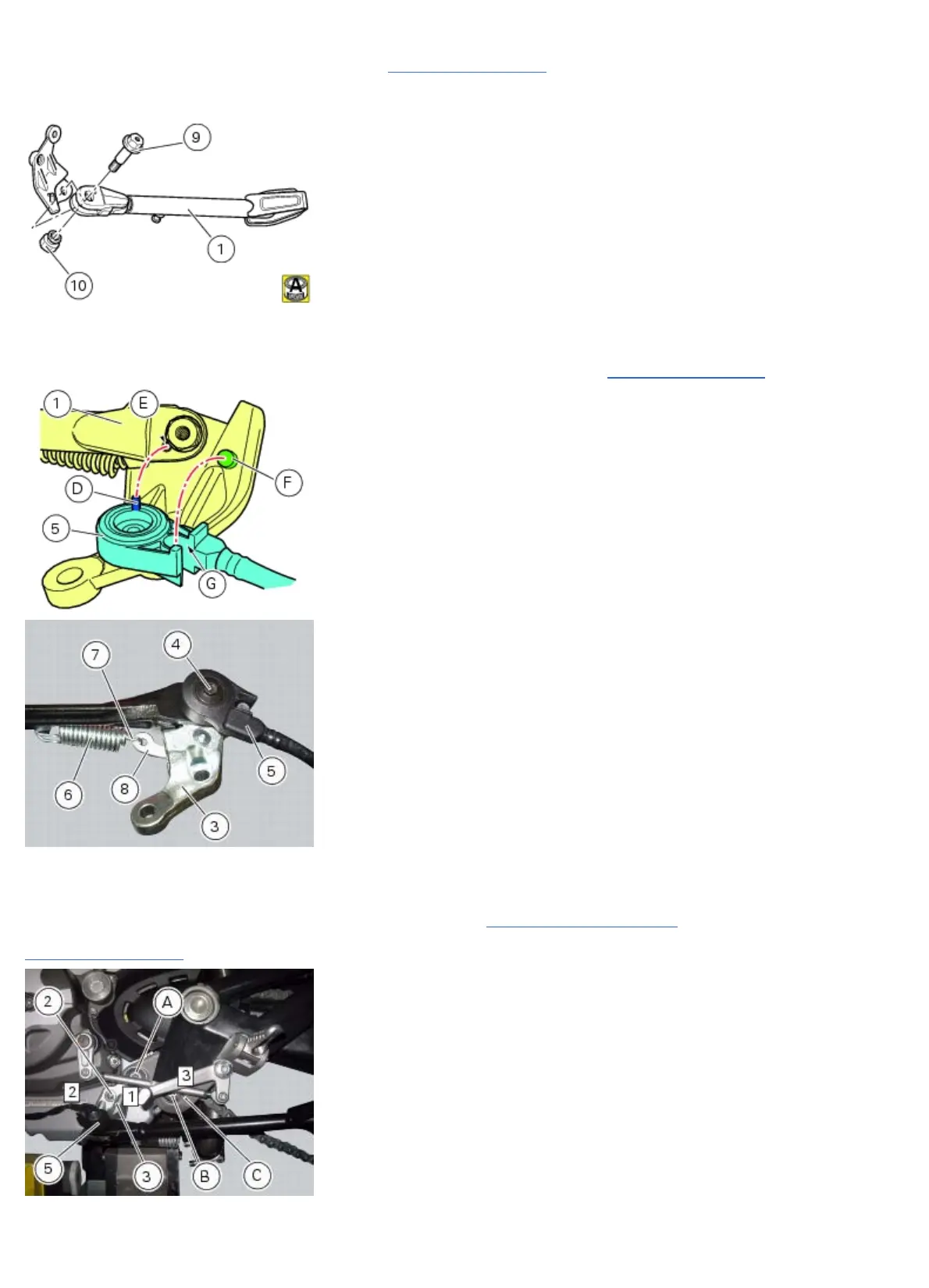 Position the side stand return springs (6) and (7) and attach them to plate (8) and to the stand (1).