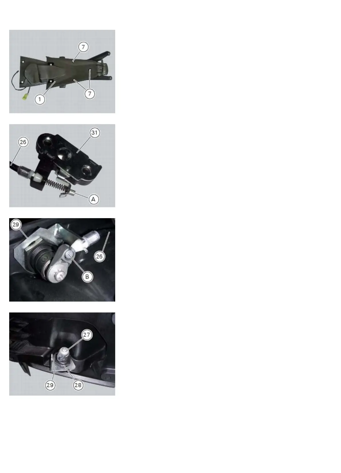 Remove the end fitting (B) and release the lock cable (26) from the latch lever (29).