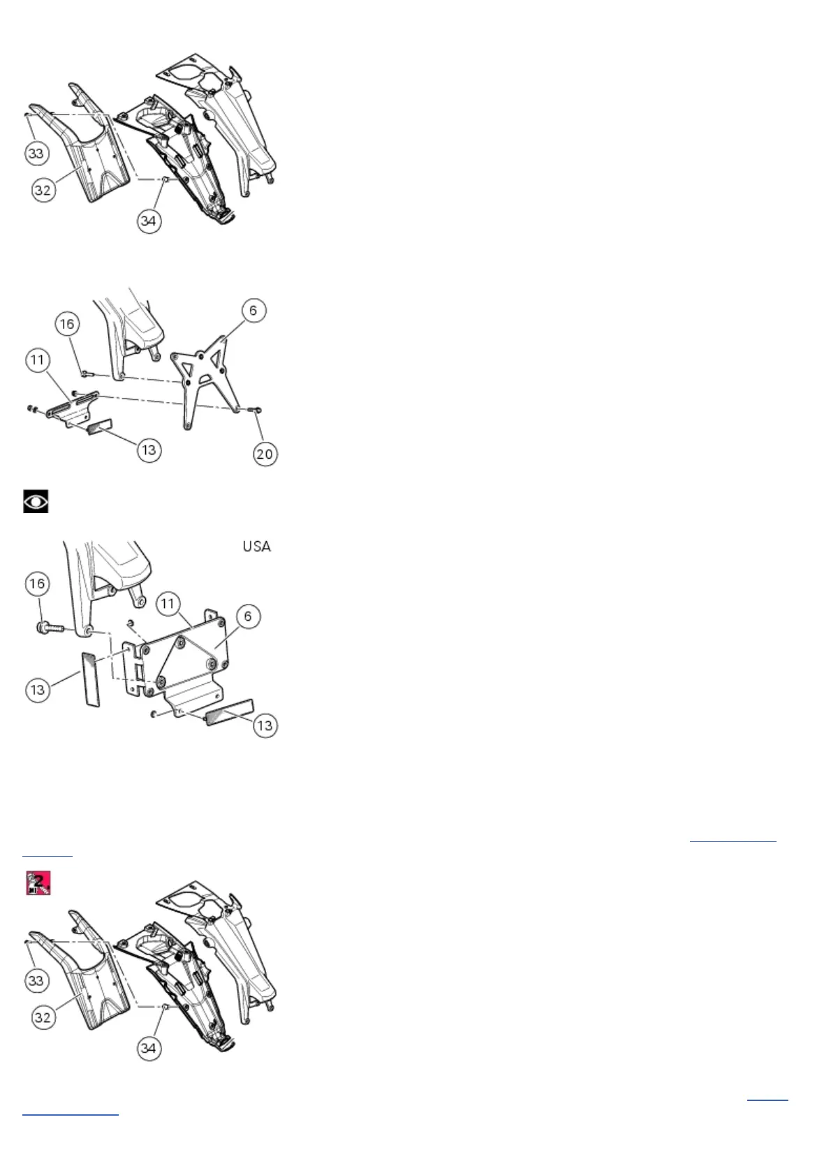 On the USA version, the plate (6) has a different design and there is a bracket with side reflectors (13).