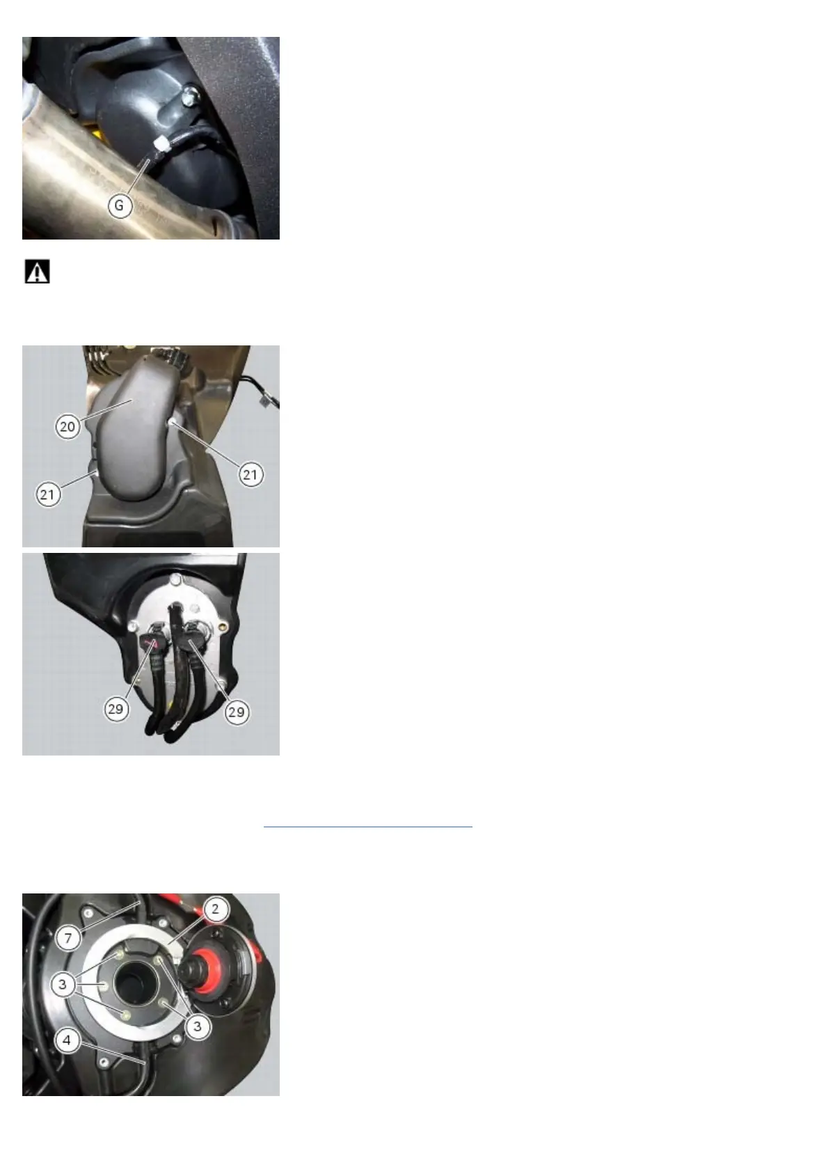 Before removing the flange cover (20), make sure the tank (1) is empty and position a rag to collect any spilt fuel.