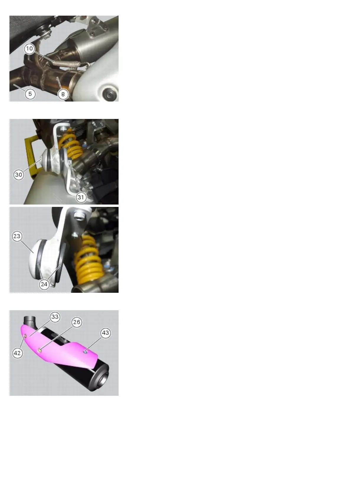While holding the nut (31), unscrew the retaining screw (30) and remove the LH silencer (8) from the motorcycle.