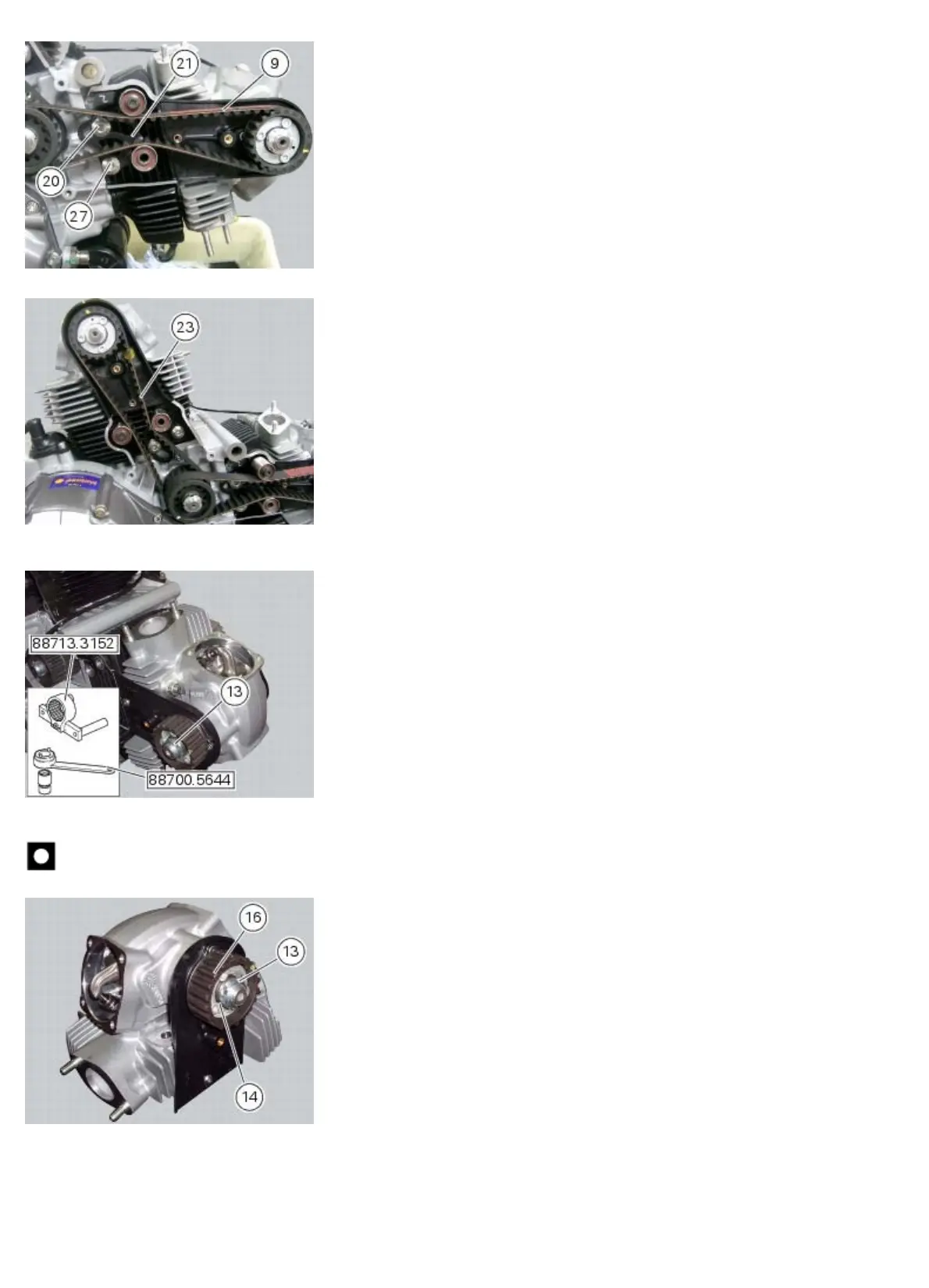 To remove the camshaft pulleys, install the tool 88713.3152 on the pulley to be removed to prevent its rotation, and