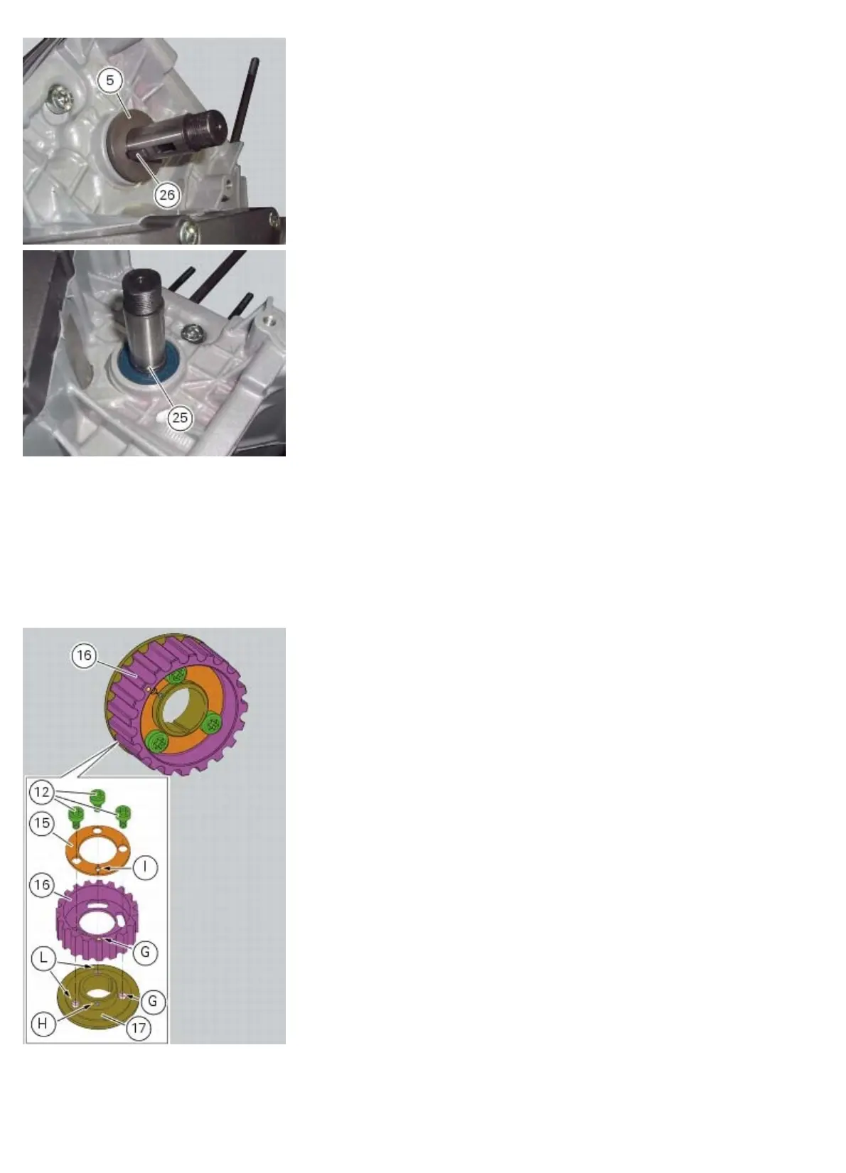 To reassemble, fit the pulley (16) on the hub (17), aligning the timing mark (G) on the pulley with the timing mark (H) on