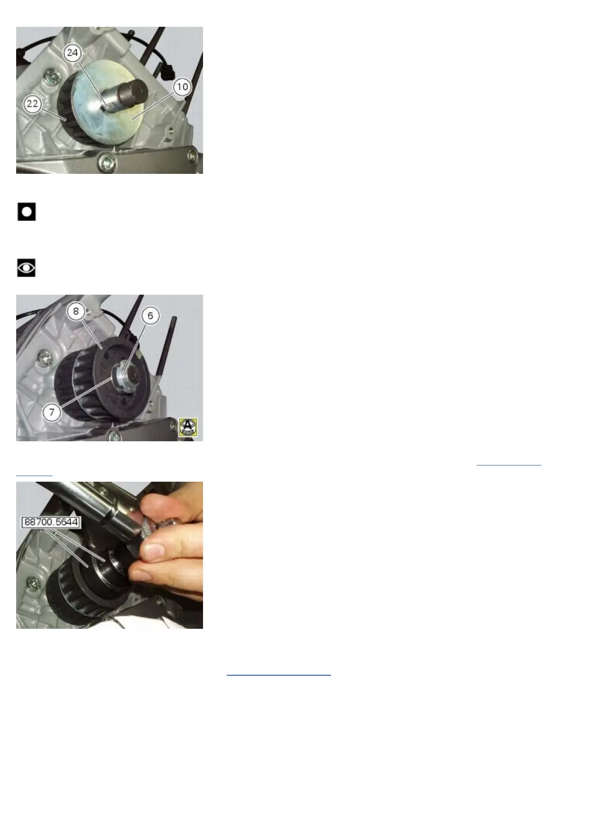 Use the wrench of tool 88700.5644 to restrain the pulleys against rotation and, using the bush of the tool in a torque